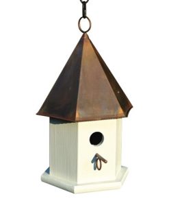 White Wood Bird House with Verdi Green Copper Roof – Made in USA