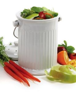 White Ceramic Compost Keeper/Bin with Odor Preventing Charcoal Filter