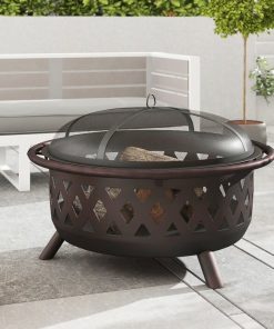 Weather Resistant Steel Wood Burning Fire Pit with Spark Screen