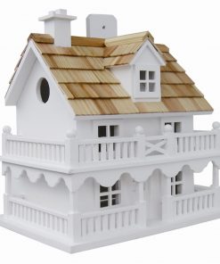 White Cottage Style Wood Birdhouse with unpainted Nest Box Bird House