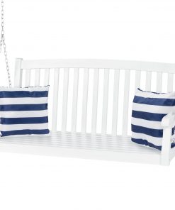 White Acacia Wooden Curved Back Hanging Porch Swing Bench with Mounting Chains