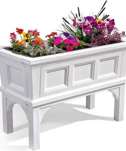 White Rectangular Raised Garden Bed Planter Box with Removeable Trays