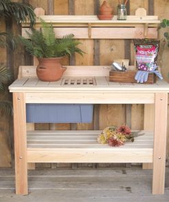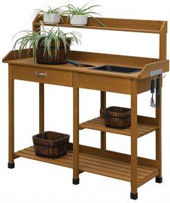 Wooden Potting Bench Work Table-sink Light Oak Finish