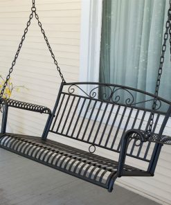 Wrought Iron Outdoor Patio 4-Ft Porch Swing in Black
