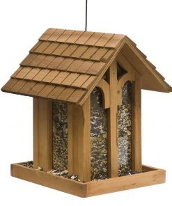 Wood House Shingled Roof Garden Bird Feeder with Perch