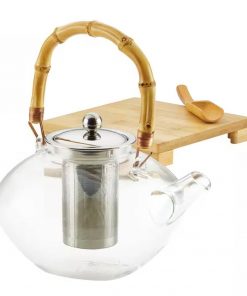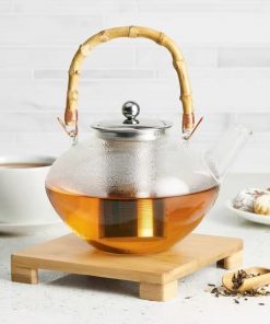 - 1 Quart Glass Teapot Kettle with Stainless Steel Tea Infuser and Bamboo Handle