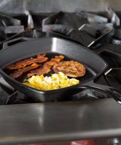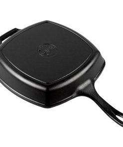 The 10.5-inch Square Cast Iron Skillet Frying Pan – Made in USA is beautifully designed and offers more cooking surface than a traditional round pan for even more superior searing. Unparalleled in heat retention and even heating. Foundry seasoned cast iron. Seasoned with oil for a natural, easy-release finish that improves with use. Easy care: hand wash, dry, rub with cooking oil. Right tool to sear, saute, bake, broil, braise, fry or grill. At home in the oven, on the stove, on the grill or over the campfire. Great for induction cooktops. Brutally tough for decades of cooking. Unparalleled in heat retention and even heating.