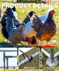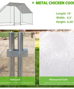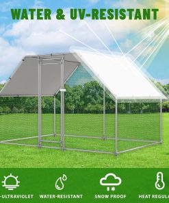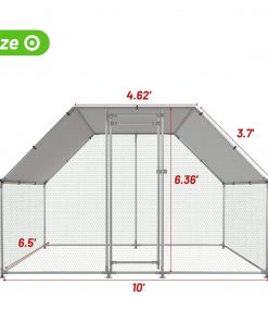 This 10-Ft x 6.5-Ft Outdoor Walk-in Metal Chicken Coop with Water-Resistant Coveris is made of high-quality steel frame, and the chicken coop is strong enough. Stainless steel and galvanized technology make our chicken coops less susceptible to rusting outdoors and more resistant. The wire mesh is strong and durable, and is effective in protecting the running chickens from some predators. In addition, small gaps between the mesh will both maintain maximum ventilation and prevent chickens from escaping the coop, adding safety to your chickens. The large outdoor chicken coop is covered with a sunscreen and waterproof PE material roof, ensuring adequate protection against sunlight, rain, or snow. The roof pitch of pet crate allows for water, debris and light snow to run off instead of accumulating on the roof. The installation of our chicken house is very convenient, requiring only two people to complete the installation, and is equipped with instructions and accessories. Simple and professional guidance can save customers a lot of time. Our metal cages are suitable for various small and medium-sized animals, such as rabbits, ducks, cats, dogs, birds, and turtles. This metal cage provides sufficient space for small animals to enjoy playing and resting.