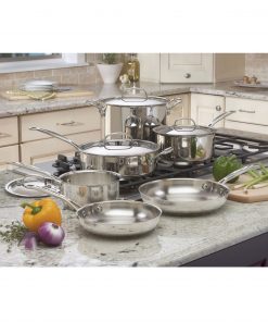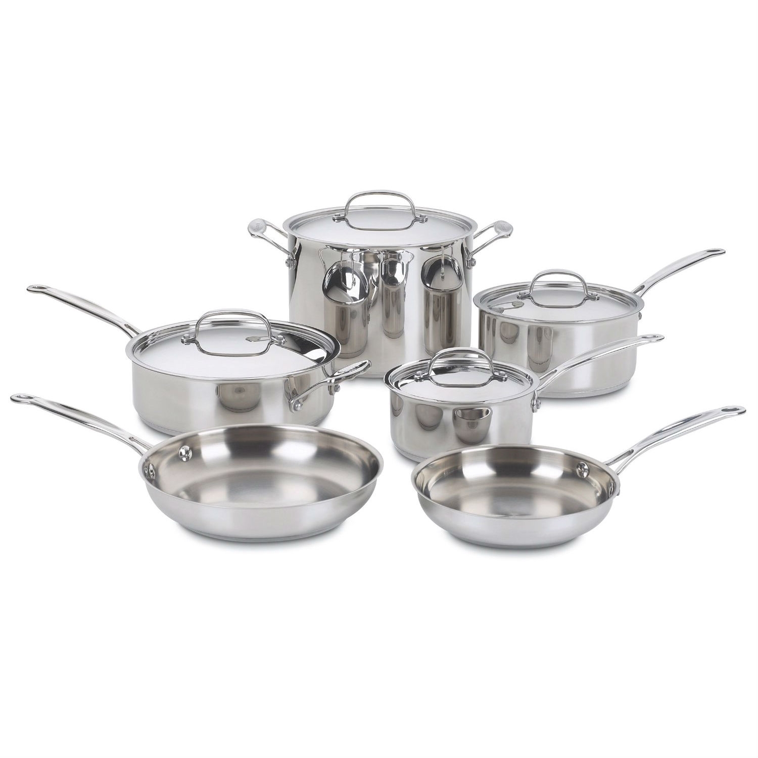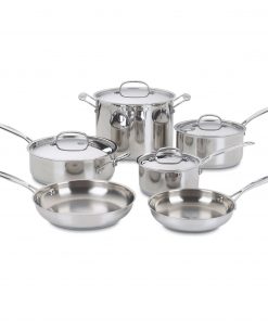 Inspired by the great French kitchens, this 10-Piece Stainless Steel Cookware Set would be a great addition to your home. Constructed of the finest materials available, to perfectly perform all of the classic cooking techniques. Designed to last a lifetime, Cuisinart cookware makes family meals memorable and entertaining a pleasure. Savor the Good Life right at home, with family and friends. Cuisinart makes it absolutely delicious. The set is an investment that will prove its worth every time you use it. Exclusively designed aluminum encapsulated base provides superior heat conductivity and even heat distribution to meet the demands of gourmet chefs everywhere. When properly cared for, your stainless cookware will give countless years of service and pleasure. Follow the use and care suggestions in this leaflet to preserve and maintain the cookwares original beauty. This versatile 10-pc. set lets you cook several dishes at once in portions large and small. Two saucepans, two skillets, a sauté pan and stockpot make preparing a variety of meals easy.