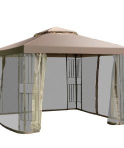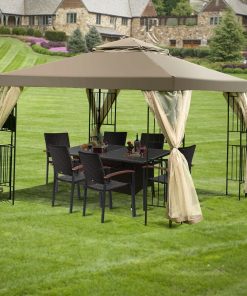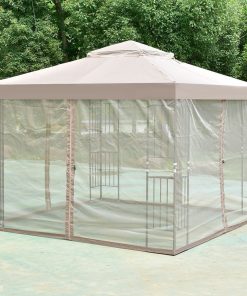 - 10 x 10 Ft Outdoor Patio Gazebo with Taupe Brown Canopy and Mesh Sidewalls