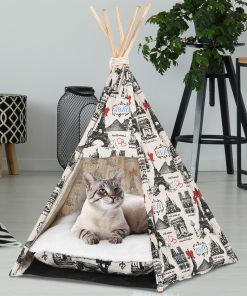 This cute and chic Cotton Foldable Teepee Tent Cat Dog Bed House Paris Theme is a great a decorative accent to any room while providing a private space for your small pet to take a nap or hide themselves. Made of 100% natural wood and cotton canvas. Also includes a thick padded mattres! This will surely become your pet’s favorite spot in the house. Easy to assemble and lightweight, it can be easily moved from one place to another.