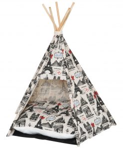 100% Cotton Foldable Teepee Tent Cat Dog Bed House Paris Theme