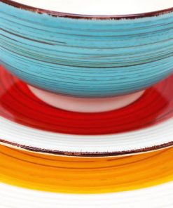 The 12-Piece Ceramic Dinnerware Set in Blue Red Yellow Green Beige – Service for 4 is a fun set to add to your home. This set comes in 4 mix and match colors to add a bit of whimsy to your next dinner. Display your wonderful culinary creations on this beautiful set!