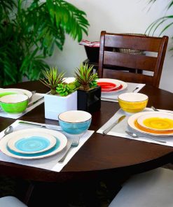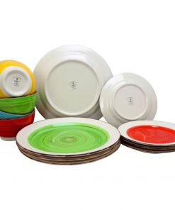 - Set a vibrant table for guests with the 12-Piece Mix And Match Dinnerware Set. Display unique culinary creations on colorful plates to delight your friends and family.