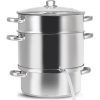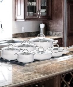 The 12 Piece Stainless Steel Cookware Set is the ideal gift for a house warming party, wedding, or anniversary. The cookware set can be used with a variety of cooktops. The capsuled bottom with aluminum core inside offers even heat distribution. This cookware set is made from stainless steel and is durable. It is dishwasher safe and easy to clean. Tempered glass lids makes viewing food easy from start to finish