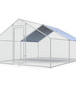 Farmhouse 13-ft x 10-ft Metal Wire Mesh Chicken Coop Run Pen Outdoor with Waterproof Cover. Durable metal chicken coop made of a high-quality stainless steel pipe frame using modern galvanizing technology. Perfect backyard cage for chickens, rabbits, ducks, geese. Durable and fit for outdoor use. There is no need to worry about rust. Includes a waterproof UV Cover made of 210-D UV-resistant Oxford cloth to protect your chickens from bad weather. A-frame peak roof design can effectively prevent rain, snow or debris accumulation on the roof. The wall of the chicken coop is made of PVC coated hexagonal wire mesh, It ensures that the poultry will not escape from the coop, while the small gaps between meshes add some safety to your poultry and prevent them from some predators.