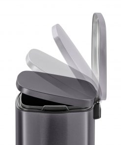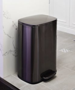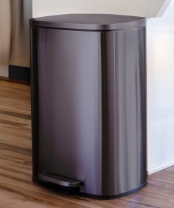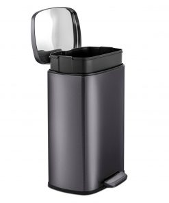 Minimal design 50 Liter / 13.2 Gallon black stainless steel kitchen trash can. Rectangular shape garbage can with step pedal open lid. Constructed from commercial-grade T430 stainless steel and built to withstand consistent use. Fingerprint-resistant body, soft-close lid, removable leak-proof inner bucket, and non-skid base – to provide you with an exceptional trash experience at your home kitchen, or office.