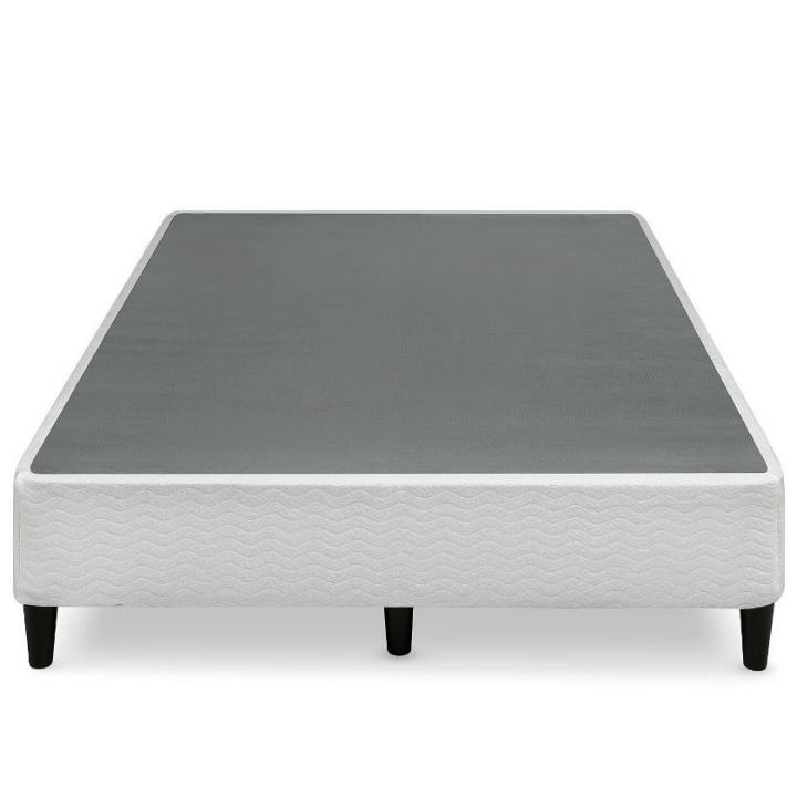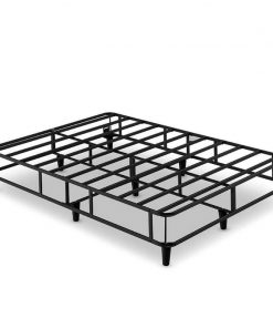 Metal inner structure for strength Compact packaging for convenient assembly Headboard brackets included This box spring has been tested to hold up to 2,400 pounds Box spring comes covered Does NOT contain any latex Average space between slats:3.5″ Floor clearance: 9″ King Size: Overall: 76″ H x 79″ W Overall Product Weight: 53.9lbs Overall Length – Head to Toe: 14″