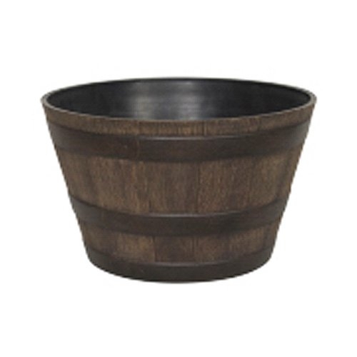 15-5-inch Round Whiskey Barrel Planter in Aged Walnut Finish Resin