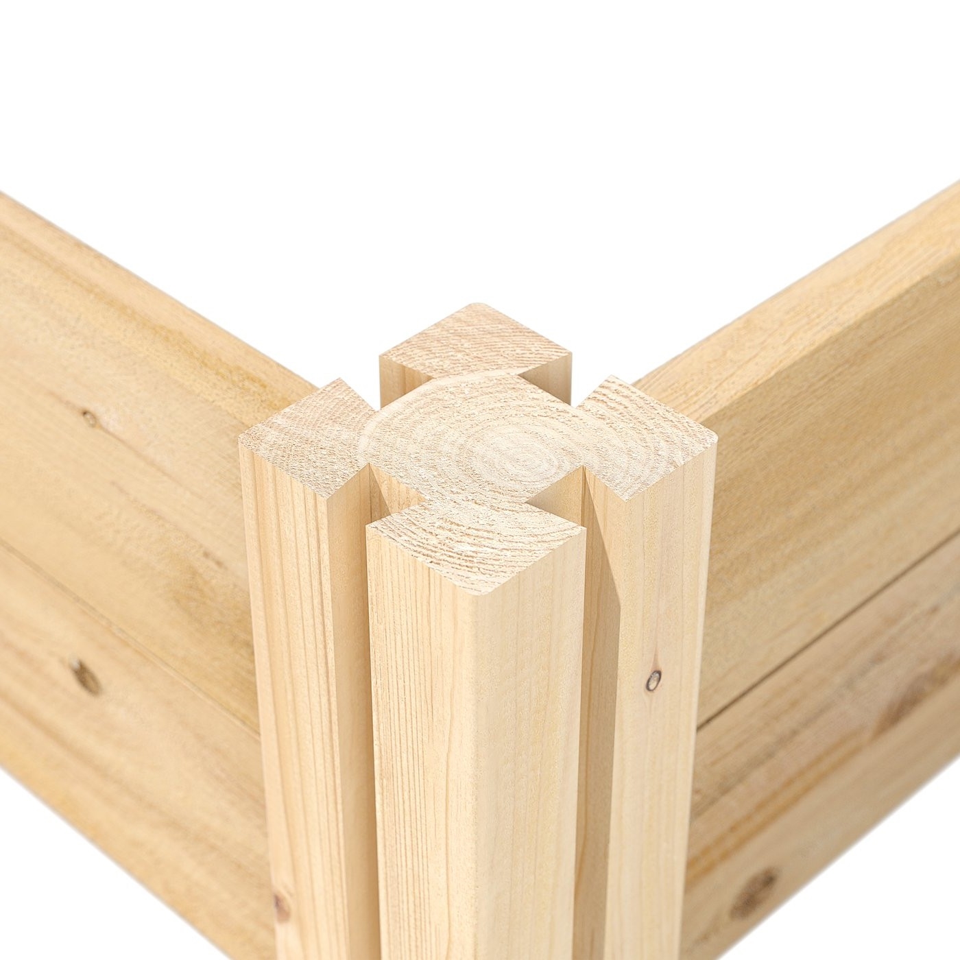 - Easy assembly required. Uses dovetail interlocking joints, which makes assembly a breeze. Each board slides into the corner posts without tools to form a secure open-bottom garden frame. Every corner post is routed on all four sides for easy assembly and expansion. The decorative tops can be added to each post using a screwdriver.