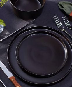 - Black Matte plates, bowls, mugs – 10.25 dinner plates, 7. 5 Salad plates, 5. 6.3 bowls and 12 oz. Mugs have a cool, hip, ebony design.