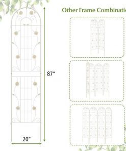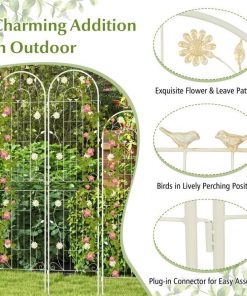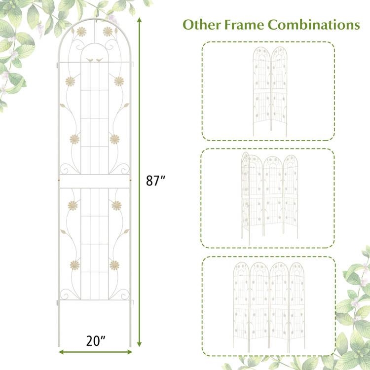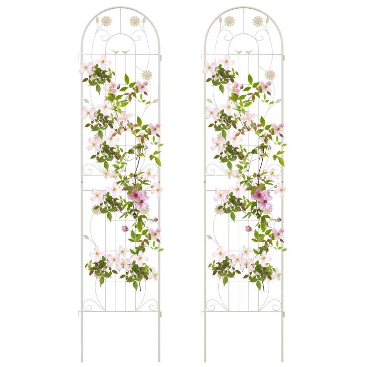 This 2 Pack – 7-ft Galvanized Steel Garden Trellis in White Metal Outdoor Finish is constructed of galvanized steel, ensuring unrivaled sturdiness and rust resistance to hold heavy plant for longer time. The trellis features 10.5″, 11″ long legs, allowing for effortless insertion into the ground, providing a stable foundation. With impressive heights of 71″, the metal trellis offers an expansive area for your climbing plants and vines to reach new heights. By providing an abundance of vertical space, your plants can thrive as they eagerly stretch towards the sun’s nourishing rays. Apart from being used as a plant support for climbing plants. The 2 pack trellis set can be combined with a garden fence, ensuring the protection and privacy of your cherished plants. Plus, you can connect 2 or more trellis in an A-shape frame for growing cucumbers or other climbing vegetables. Designed with enchanting birds, flowers and leaves, the tall garden fence will effortlessly add a touch of timeless elegance and retro charm to your garden, lawn, or yard. Moreover, you have the freedom to arrange more trellises to different layouts according to your unique requirements. Coming with complete components and a detailed instruction manual, the assembly process of the wire lattice grid panel is a breeze. Besides, the 2 pack fence trellises are designed with an effortlessly interlocked connector, allowing for quick setup.