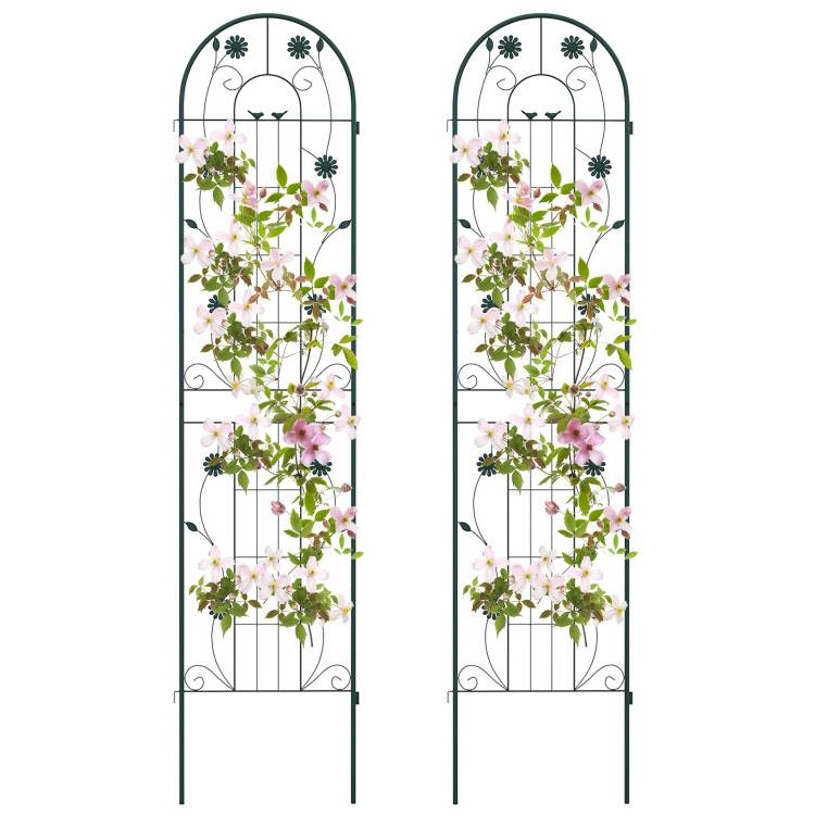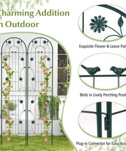 This 2 Pack – 7-ft Galvanized Steel Outdoor Garden Trellis in Green Metal Finish is constructed of galvanized steel, ensuring unrivaled sturdiness and rust resistance to hold heavy plant for longer time. The trellis features 10.5″, 11″ long legs, allowing for effortless insertion into the ground, providing a stable foundation. With impressive heights of 71″, the metal trellis offers an expansive area for your climbing plants and vines to reach new heights. By providing an abundance of vertical space, your plants can thrive as they eagerly stretch towards the sun’s nourishing rays. Apart from being used as a plant support for climbing plants. The 2 pack trellis set can be combined with a garden fence, ensuring the protection and privacy of your cherished plants. Plus, you can connect 2 or more trellis in an A-shape frame for growing cucumbers or other climbing vegetables. Designed with enchanting birds, flowers and leaves, the tall garden fence will effortlessly add a touch of timeless elegance and retro charm to your garden, lawn, or yard. Moreover, you have the freedom to arrange more trellises to different layouts according to your unique requirements. Coming with complete components and a detailed instruction manual, the assembly process of the wire lattice grid panel is a breeze. Besides, the 2 pack fence trellises are designed with an effortlessly interlocked connector, allowing for quick setup.