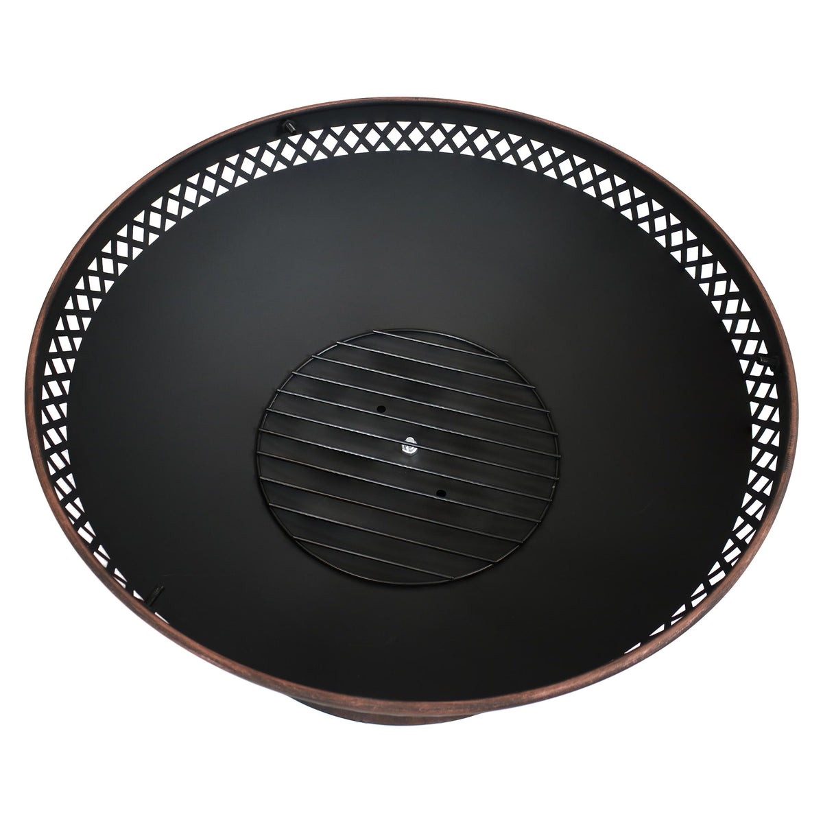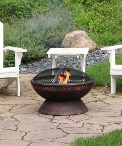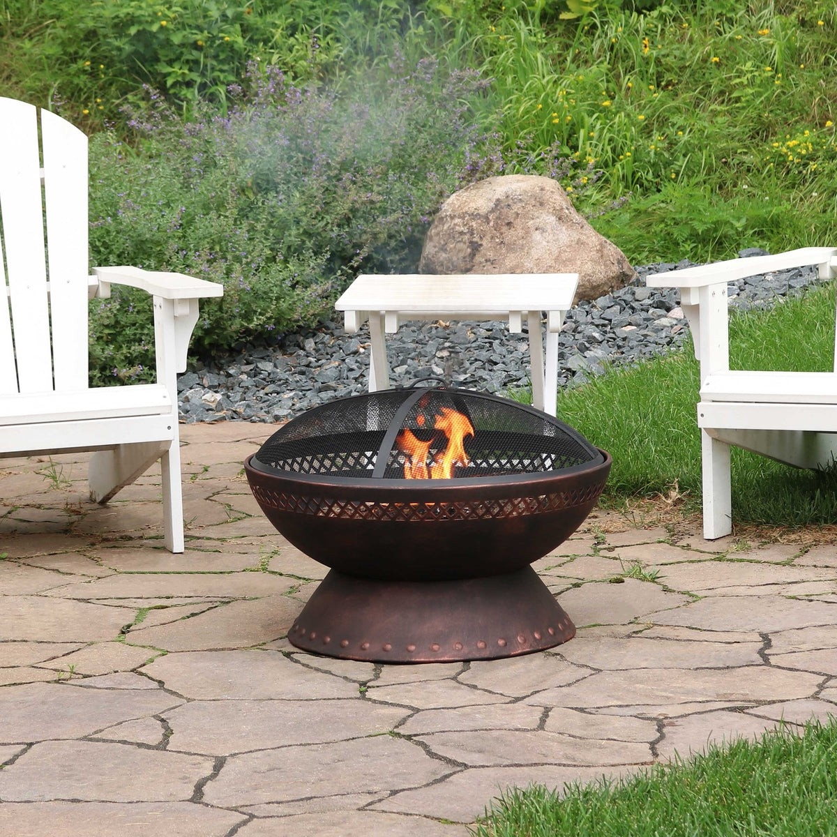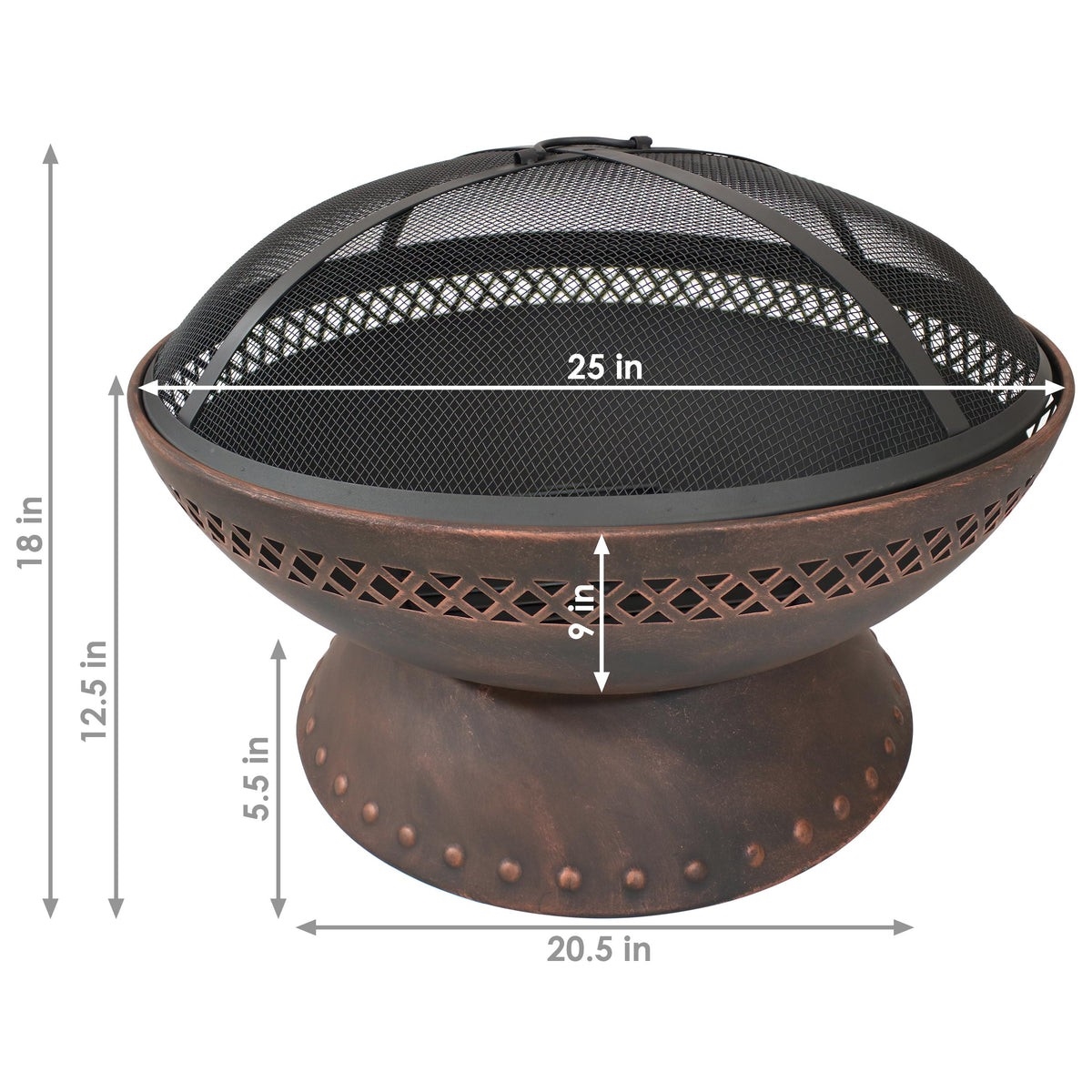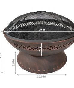 Gather around the warmth of a glowing fire with this 25 Inch Copper Chalice Steel Fire Pit with Spark Screen. This outdoor fire pit will last you many seasons with a 0.7-millimeter thick steel construction and copper high-temperature paint finish. Also, the top of the fire bowl features a charming diamond cutout pattern along the edge for a detailed design.