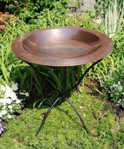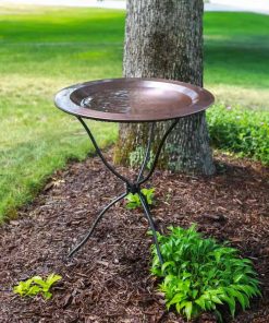 This 29-inch High Tripod Ring Stand for Birdbath – Bird Bath Bowl Not Included is 29 inches tall and features a stable tripod design with a removable ring that folds flat for easy storage. It’s made of durable wrought iron with a graphite powder coat finish for maximum weather resistance and can hold our largest copper birdbath. It’s perfect for entertaining, floral displays, or plants.