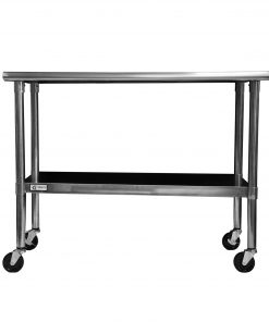 This 2ft x 4ft Stainless Steel Top Kitchen Prep Table with Locking Casters Wheels is great for your indoor, outdoor, kitchen, or garage needs. This table is built with a fully adjustable bottom shelf to store anything you need. It also comes with wheels that make this the perfect mobile unit.