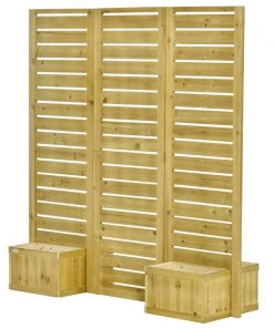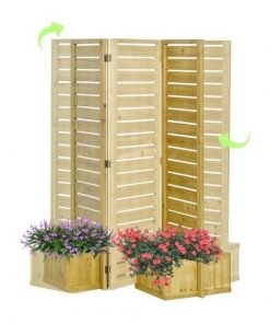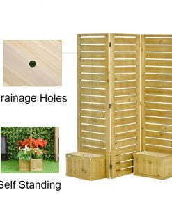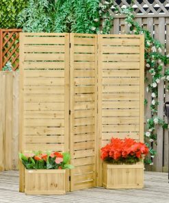 Provide some privacy to your outdoor oasis with the 3 Panel Fir Wood Outdoor Privacy Screen with 4 Garden Bed Planters. This sturdy hardwood screen with raised beds will add beauty and privacy to your outdoor living areas. The 4 planters are ideal for displaying a wide range of decorative plants, herbs, and flowers. The 3 attached foldable panels can act as a dynamic accent wall or privacy screen and support various climbing flowers and plants. Once filled with weighted soil, the planters enable the screen to stand freely on any flat surface. Hinged design allows it to be folded or expanded. Naturally long-lasting fir wood for added durability and style.