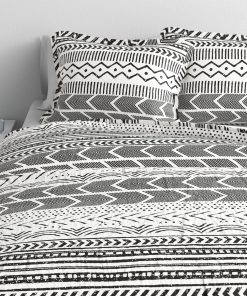 3 Piece Scandinavian Black White Reversible Cotton Set in Full/Queen