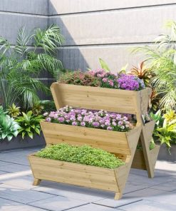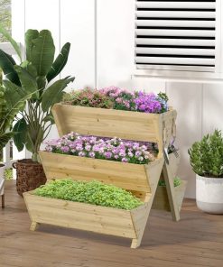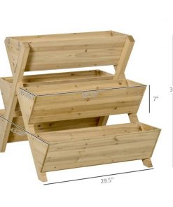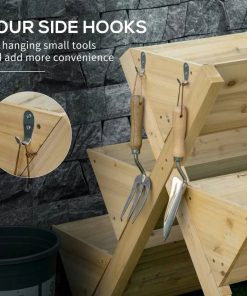 This 3-Tier A Frame Fir Wood 5 Elevated Planter Box Raised Garden Bed lets you separate plants by soil type or variety to give you a stylish and practical backyard garden. The water draining bottom holes help plants have healthy water levels. Featuring four convenient side hooks to keep tools, gloves, decorations, and accessories. Get extra grow space by going vertical with your garden. With this planter, your patio, yard, or balcony has never looked so pretty.
