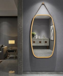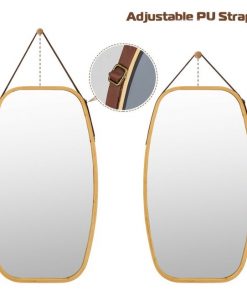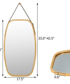 Made of superior bamboo frame and featuring a leather strap, this 30.5 Inch Bamboo Wall Mounted Bathroom Mirror is sturdy and pracical for any bathroom. Comes with a strong leather strap that is adjustable, so the mirror can be hung at various heights from 33 inches to 42.5 inches. Also comes with a wall mount hook, which can be easily set up for convenient hanging. This elegant mirror with rounded corners is a perfect decorative addition for your bedroom, living room, bathroom, or anywhere you like.