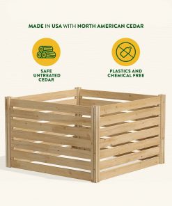 Create an environmentally friendly, affordable home garden composting system with this cedar wood compost bin. Turn your household waste and grass clipping and leaves into a natural food for your lawn, garden, and flower beds. Layer green food scraps (such as vegetable and fruit peelings, coffee grounds, and grass clippings) and browns (such as eggshells, corncobs, and leaves) and allow materials to begin to compost. The wooden bin’s open design makes it easy to turn the pile every two to three weeks with a pitchfork to aerate the compost and speed up the breakdown process. Depending on the climate and the mix of materials, your compost will be ready to use in 3 to 12 months. To keep a continuous supply, create a multi-bin system with our add-on kits; after one compost bin is full, and the materials have begun to break down, simply move the material to the next bin and begin the process again in the first bin. A three-bin system will keep the process moving seamlessly. Includes 4 posts and 28 boards that are 11/16 in thick, along with 48 spacers. Cover with a tarp or plywood (not included) if desired. Made from North American Cedar Wood.