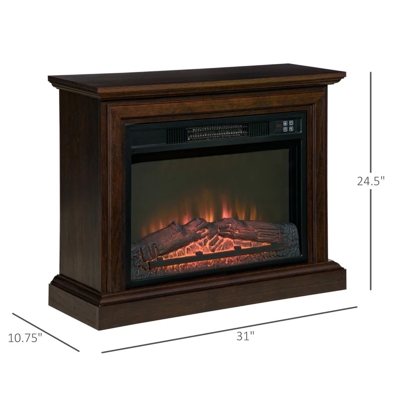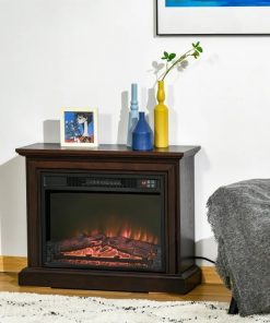 This 31 inch Brown Electric Fireplace Heater Dimmable Flame Effect and Mantel w/ Remote Control comes with a particleboard mantel frame, giving your room a real tall fireplace experience without the mess of logs and ash. This vintage electric fireplace features realistic looking burning logs and flame effects to embellish your room while staying warm. The flame effect can be operated with or without heat and 3 dimming settings allow you to set the brightness of light how you enjoy it most. This freestanding fireplace heater can be adjusted by pressing the buttons on the front or with a remote control to turn it on/off, brightness, timer and heat temperature. With periodic timing from 0.5 to 6 hours, you can easily control the heating time of this electric fire place heater even when you sleep. Choose the temperature you desire and the heater will automatically turn on when the room temperature is lower than the set temperature, and stopping when it’s higher.