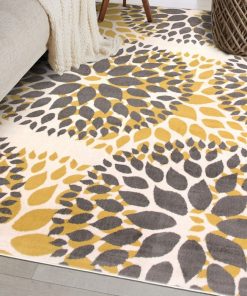 This bright area rug showcases a fun bright yellow and grey floral pattern that delivers a traditional look and feel to your floors. This rug is power-loomed from polypropylene with a stain-resistant design, so it stands up to occasional spills and it has a jute backing. The yellow and grey color palette is just right for warming up your space. Also, has a low 0.31″ pile height that’s designed to stand up to your family’s comings and goings in your entryway or out on the porch. This beautiful rug includes a backing, but we recommend pairing it with a rug pad to keep it securely in place.
