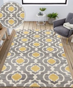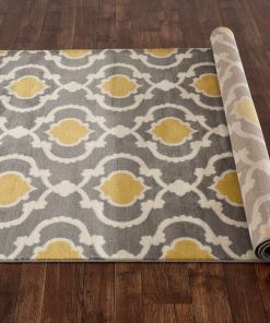 Give any room a vibrant contemporary look with this 3’3″ x 5′ Grey Yellow Trellis Geometric Polypropylene Area Rug. This beautiful area rug is machine-woven of stain/fade resistant polypropylene in a thick 0.39″ pile. Perfect for rolling out in fashionable living rooms or just digging your toes in right out of bed in the morning. Comes finished with a durable jute backing and performs best when paired with a rug pad to prevent shifting and sliding.