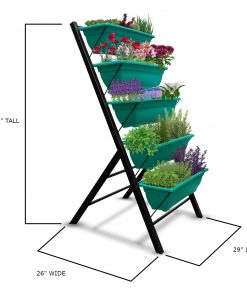 No space, no problem! Grow veritcal with this sturdy convenient space-saving solution. The 4 FT 5 Tier Green Vertical Garden Indoor/Outdoor Elevated Planter provides maintenance-free gardening, consisting of a steel frame, food-safe bins, and a cascading drainage system. Perfect for indoor or outdoor use and safe to eat out of. The 5 green plastic bins are made from 100% new Polypropylene material (PP) and are food safe (BPA free, lead free, mercury free). Bins also have an option for a Cascading Drainage System which you can add by following the detailed instructions in the manual. This allows water flow from the top down to each succeeding row to ensure all plants are adequately watered, and no stagnant water remains.
