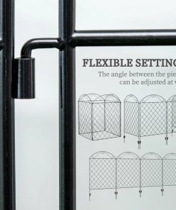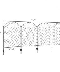 This 4 Pack Steel Foldable Fence Arch Trellis Panel Animal Barrier comes with 4 panels per purchase, measuring 34.75″ x 43.25″ high. Each set of panels can reach a maximum of 11.5′ long. Our metal garden fence customizes into all sorts of angles to suit your needs. Bend the four steel fence panels into shapes like an “I”, “L”, square, or wave. It’s excellent as garden edging for flowers and as a border to another yard. This garden fencing is easy to install with no tools required. The steel panels connect with a simple interlocking design and push straight into the ground with included stakes, making them a portable fencing option.