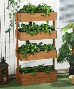 Make the most of your space, GROW VERTICAL!! This 4 Tier Vertical Wooden Planter Box Raised Bed Natural provides ample space for flowers, herbs, vegetables, and more! Each flower box comes with a non-woven fabric on its bottom. This non-woven fabric allow the tiered planter to drain away excess water without soil spilling out in the process. Made of solid fir wood covered over with a water protective varnish.
