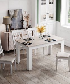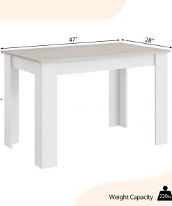 This 47-inch Kitchen Dining Table or Computer Desk in White Light Grey Wood Finish is designed with modern white legs and rustic surface to improve the overall attractiveness of the table, bringing the best taste of your life. Measuring 47″ x 28″ in the size of the tabletop, this small kitchen table creates sufficient space for 4 people while making it fit limited places, such as dorms, apartments and small dining rooms. Apart from using it as a dining table, this indoor furniture serves as a computer table as well, fulfilling your different needs whether it’s working or studying. Constructed of solid engineered wood, this rectangular dinner table is sturdy enough to support various items. Besides, the anti-scratch foot pads protect the floor from being scratched while adding extra stability. The installation of this dinner table is quite simple. Clear instruction will guide you step by step. And the smooth surface is convenient for daily maintenance.