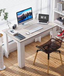 - 47-inch Kitchen Dining Table or Computer Desk in White Light Grey Wood Finish