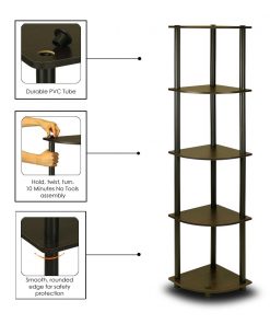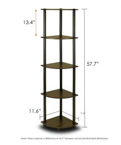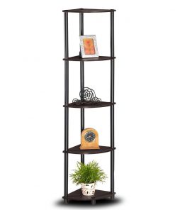 - 5-Tier Corner Display Shelf Bookcase in Espresso & Black