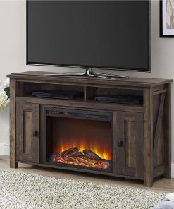 50-inch TV Stand in Medium Brown Wood with 1,500 Watt Electric Fireplace