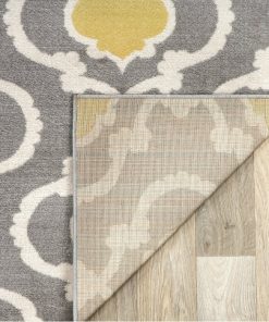 Give any room a vibrant contemporary look with this 5’3″ x 7’3″‘ Grey Yellow Trellis Geometric Polpropylene Area Rug. This beautiful area rug is machine-woven of stain/fade resistant polypropylene in a thick 0.39″ pile. Perfect for rolling out in fashionable living rooms or just digging your toes in right out of bed in the morning. Comes finished with a durable jute backing and performs best when paired with a rug pad to prevent shifting and sliding.