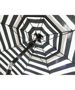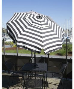 Transform your patio or outdoor oasis into a shady retreat with this charming made in Italy 6 Foot Black and White Stripe Drape Umbrella. Perfect for sunny days by the pool.