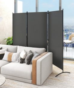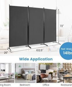 This 6-Ft Grey 3-Panel Room Divider Screen with Steel Base and Heavy Duty Hinges would be a great addition to your home. Perfect Space Separation: The height of this divider is 6ft, which is high enough for you to create an enclosed personal space. But unlike ordinary walls which are completely enclosed, there is still space at the top of the screen for air circulation. This room divider can make you more relaxed when providing privacy at the same time. Well Selected Material: We especially selected premium polyester fabric as the material to manufacture this room divider. The whole frame is sturdy and durable enough to be used for a long time. Sturdy and Curved foot tubes increase the friction of the ground, making the screen more stable and not easy to dump. Multifunctional Usage: The screen is suitable for all kinds of scenes. It can be placed next to a window and used to block out sunlight when the sunlight is dazzling or used as a door in a small space. It is an easy way to create temporary privacy for overnight guests. Or you can use this screen to separate a room for eating and socializing. Flexible and Foldable Design: Coming with double hinges, this room divider can be quickly turned in either direction. When you do not need it, you can fold it up and put it in your storage room or other places. Because of the lightweight design, you can move it to different places according to your different needs. Classic Style and Easy Assembly: This privacy screen which is made of premium fabric is stylish and concise, which can match well with other furniture and will be a great addition to your home. Featuring simple and easy instructions, this room divider can be assembled by only one person in a short time.