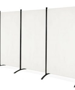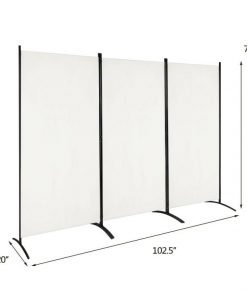 This 6-Ft White 3-Panel Room Divider Screen with Steel Base and Heavy Duty Hinges would be a great addition to your home. Perfect Space Separation: The height of this divider is 6ft, which is high enough for you to create an enclosed personal space. But unlike ordinary walls which are completely enclosed, there is still space at the top of the screen for air circulation. This room divider can make you more relaxed when providing privacy at the same time. Well Selected Material: We especially selected premium polyester fabric as the material to manufacture this room divider. The whole frame is sturdy and durable enough to be used for a long time. Sturdy and Curved foot tubes increase the friction of the ground, making the screen more stable and not easy to dump. Multifunctional Usage: The screen is suitable for all kinds of scenes. It can be placed next to a window and used to block out sunlight when the sunlight is dazzling or used as a door in a small space. It is an easy way to create temporary privacy for overnight guests. Or you can use this screen to separate a room for eating and socializing. Flexible and Foldable Design: Coming with double hinges, this room divider can be quickly turned in either direction. When you do not need it, you can fold it up and put it in your storage room or other places. Because of the lightweight design, you can move it to different places according to your different needs. Classic Style and Easy Assembly: This privacy screen which is made of premium fabric is stylish and concise, which can match well with other furniture and will be a great addition to your home. Featuring simple and easy instructions, this room divider can be assembled by only one person in a short time.