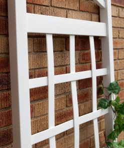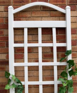 With its classically arched top and wide, open lattice design, this 6 Ft White Vinyl Garden Trellis with Arch Top with Ground Mount Anchors is a natural way to dress your outside wall in nature’s finery. It is crafted of maintenance-free PVC vinyl that is a cinch to clean with your garden hose and it comes complete with ground-mount anchors so set-up is a breeze. Simply plant your favorite climbing flowers at the base and let nature take over. Your flowers and vines will climb up and bloom with abandon. This trellis could also be used as a natural and beautiful screen between you and your neighbors.